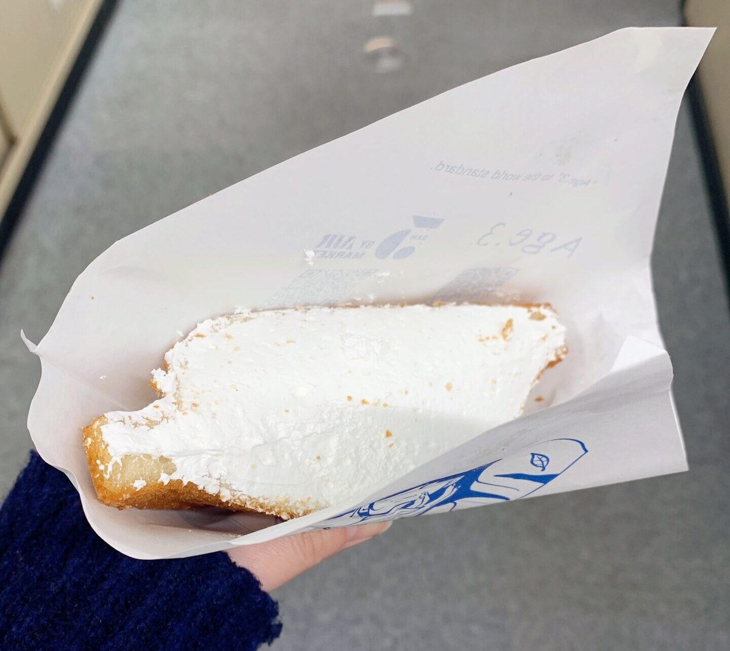 揚げパンの間にクリームがびっしり詰まっている新感覚スイーツです。