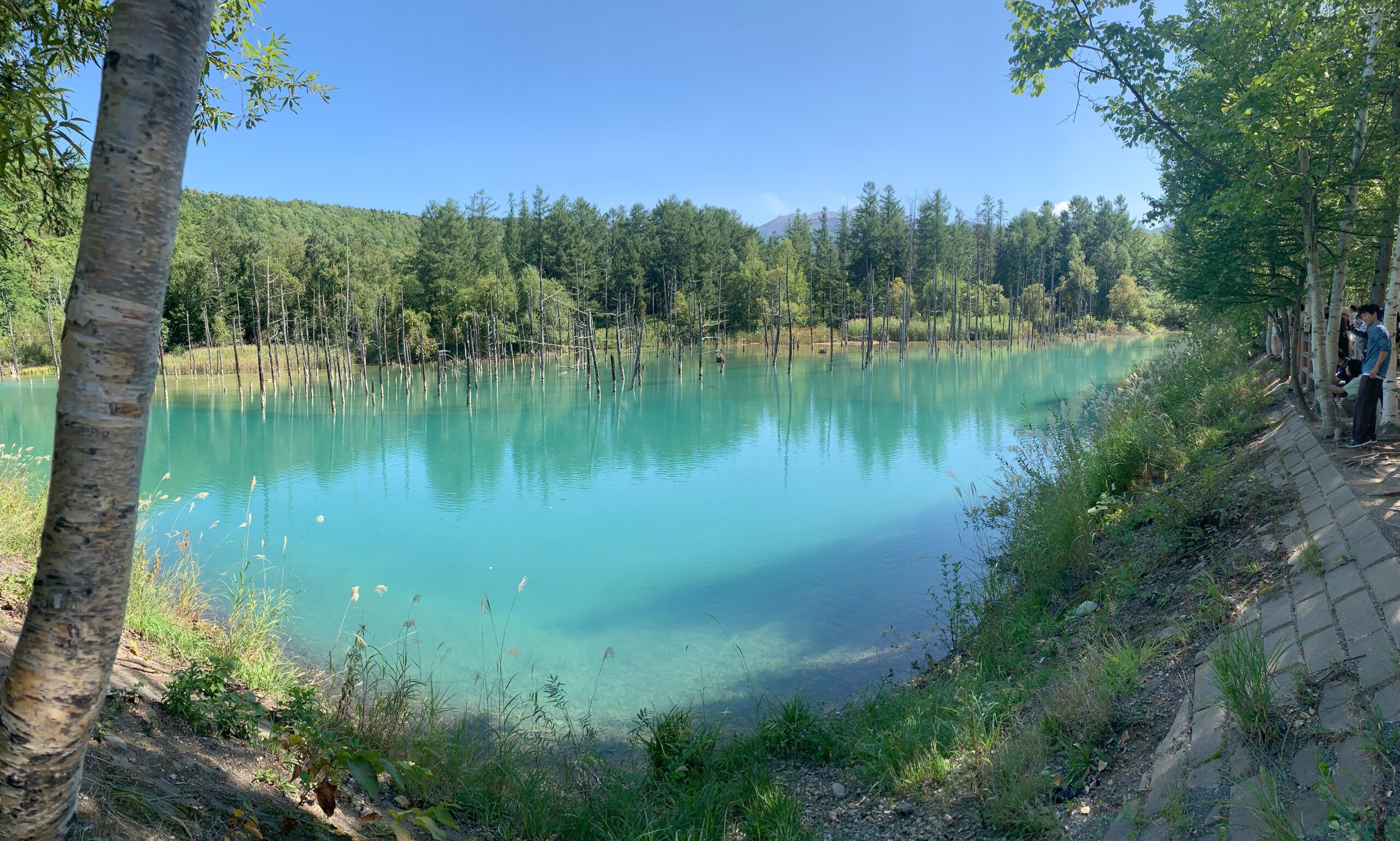 美瑛川の成分が混ざり合うことで光を反射し、神秘的に青く見えるという映えスポットです。