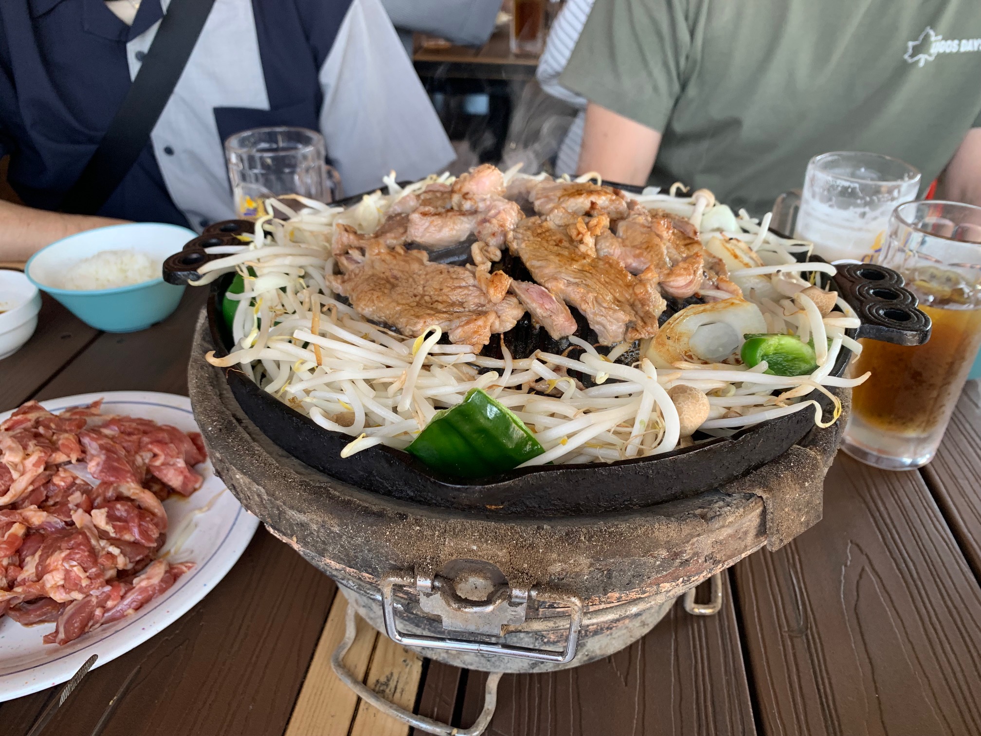 旅館の朝ごはんが豪華すぎて、正直腹ぱんではありますが二日目のランチはジンギスカン。